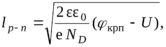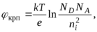 где 0 – энергетическая постоянная; - относительная диэлектрическая постоянная полупроводникового материала; крп - контактная разность потенциалов; Nб – концентрация примесей в базе. Соотношения (1.13) и (1.15) соответствуют несимметричному p-n переходу, для которого NA>>ND=Nб или ND>>NA=Nб.