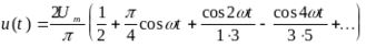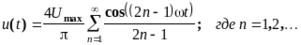 Напряжение однополупериодное выпрямленное синусоидальное. Кривые мгновенных значений. ( первые 4 слагаемых)