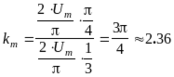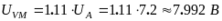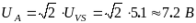 Показания вольтметра при напряжении синусоидальной формы с той же амплитудой, что и однополупериодного напряжения: UVS=64 В.