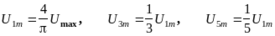 Таблица измерения действующих значений напряжений для первых трех гармоник однополупериодного напряжения.