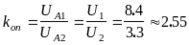 Вычисление по результатам измерения отношение значений амплитуд напряжения первой гармоники ко второй: