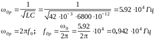 5)Вычислить резонансную частоту f0р параллельного контура рис. 1, полагая, что L - суммарная индуктивность двух последовательно соединенных катушек с индуктивностями 26 и 16 мГн, а емкость C=6800 пФ