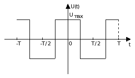в виде меандра, график которого показан на рисунке, а временная зависимость описывается в виде: