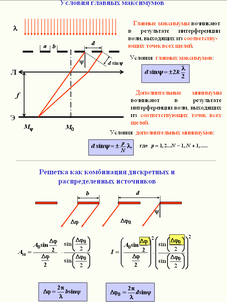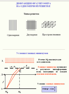 10. Дифракция в параллельных лучах на одномерной дифракционной решетке. Условия главных максимумов и минимумов. Условия дополнительных минимумов.