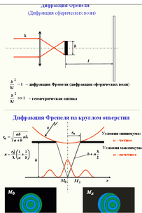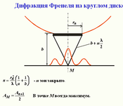 8. Метод зон Френеля. Дифракция на круглом отверстии и на диске.