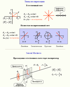 13. Естественный и поляризованный свет. Виды поляризации света. Представление естественного света как суперпозиции двух плоскополяризованных волн.