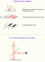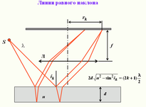 5. Интерференция в тонких пленках, условия максимумов и минимумов интерференции в отраженном свете. Линии равной толщины и равного наклона.