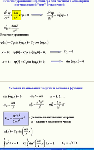 33. Частица в одномерной прямоугольной потенциальной яме бесконечной глубины. Квантование энергии и импульса.