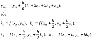 Наконец, метод четвертого порядка — классический метод Рунге — Кутты описывается системой следующих пяти соотношений: