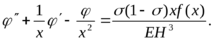 В этом ДУ — угол отклонения нормали к пластинке от первоначаль­ного положения, f(х) — действующая сила,  — коэффициент Пуас­сона, Е — модуль Юнга и H — толщина пластинки.