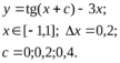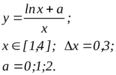 Составить программу для расчета значений функций в указанном диапазоне изменения аргумента и параметра. Результаты вычислений поместить в файл prog_4.res. По результатам расчета функций на указанном отрезке с заданными шагом и диапазоном изменения параметра построить их графики.