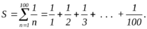 Алгоритм накопления организуется по циклической схеме Sn+1 = Sn + an+1, причем в качестве переменной цикла следует использовать номер члена суммы n = 1, 2, ..., 100. Тогда начальное значение переменной, в которой будет накапливаться сумма, следует установить равным нулю, а очередной член суммы формировать по общей формуле. Алгоритм предлагаемых вычислений может быть представлен блок-схемой на рис.1.