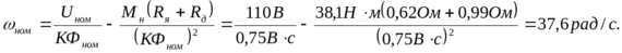 кФн = (Uн- Iн٠Rя)/wн=(110-31,5)/104,7=0,75 В٠с