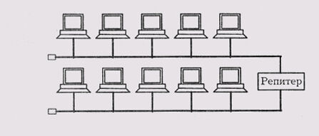 Рис. 1.4. Соединение сегментов сети типа «шина» с помощью репитера