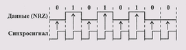 Рис. 2.12. Передача в коде NRZ с синхросигналом