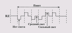 Рис. 2.13. Использование кода RZ в оптоволоконных сетях
