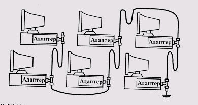 Рис. 8.6. Соединение компьютеров сети тонким кабелем