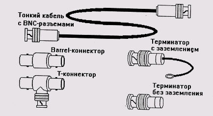 Минимальный набор оборудования для односегментной сети на тонком кабеле должен включать в себя следующие элементы: