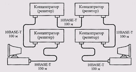 Рис. 10.2. Сеть Ethernet максимально возможной длины
