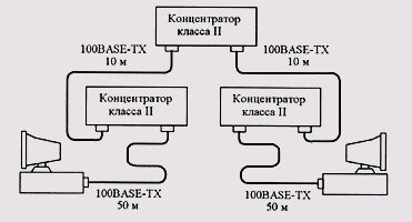 Рис. 10.7. Пример максимальной конфигурации сети Fast Ethernet