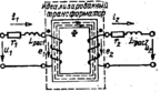 Принцип действия: Предположим сначала, что цепь вторичной обмотки ТР разомкнута и при действии источника напряжения u1=e ток в первичной обмотке равен i. Магнитодвижущая сила i11 возбуждает в магнитопроводе магнитный поток, положительное направление которого определяется правилом буравчика. Этот магнитный поток индуктирует в первичной обмотке ЭДС самоиндукции eL1 и во вторичной обмотке ЭДС взаимной индукции eM2. После замыкания цепи вторичной обмотки под действием ЭДС взаимной индукции eM2 в приемнике с сопротивлением нагрузки r возникнет ток i2. Схема замещения: В соответствии с законами Кирхгофа ТР в рабочем режиме может быть описан системой из 3-х уравнений: U1 = –E1 + I1(R1+jX1)