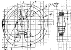 1) –якорь – цилиндрический пакет из листов электротехнической стали на наружной поверхности которого в осевых пазах размещена обмотка якоря (2) – волновая (низковольтовая) и петлевая, однослойная или двухслойная. Концы обмотки 2 прикреплены к коллектору 6, 3- полюс индуктора, 4 – обмотка возбуждения, питаемая постоянным током, 5 – ярмо индуктора, 6 – коллектор – цилиндр, набранный из медных пластин, изолированных друг от друга. Коллектор вращается вместе с якорем. 7- щетки, они неподвижны и сделаны из графита.