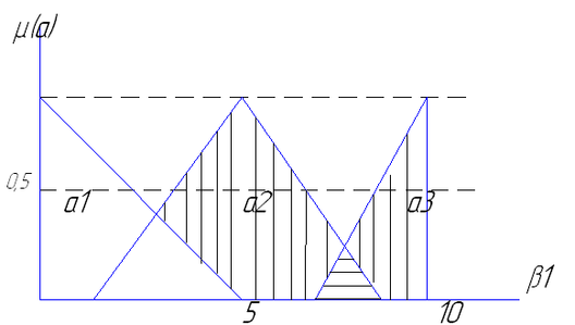 Функция принадлежности терма “ средняя” и “высокая” представлена на рисунке горизонтальной штриховкой.