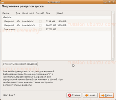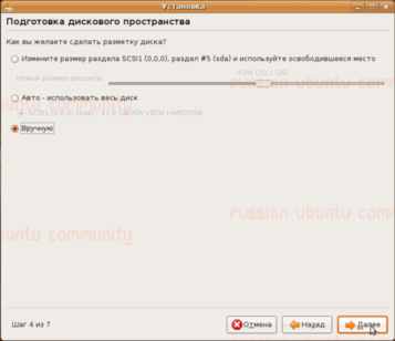 ... Ну что же, обсудив теорию, вернёмся к практике. Итак, разбивка дискового пространства в программе установки Ubuntu: