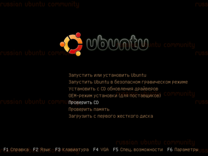 Первым делом рекомендуем проверить установочный диск Ubuntu на целостность (даже если вам прислали официальный диск) с помощью пункта «Проверить CD»: