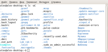 4) ls -C new - вывод списка файлов каталога new в несколько колонок в алфавитном порядке: