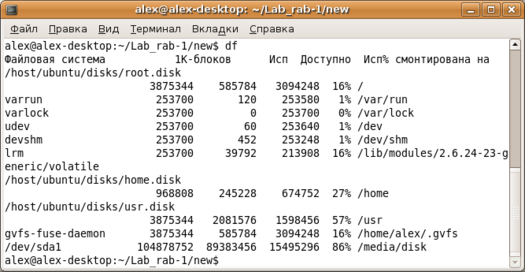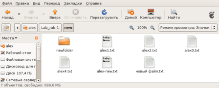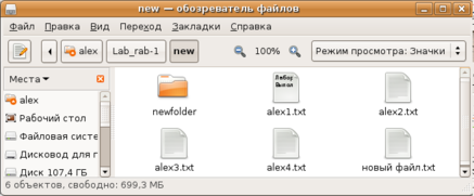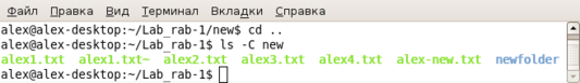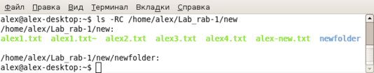 5) ls -RC/home/alex/Lab_rab-1/new - рекурсивный просмотр каталогов