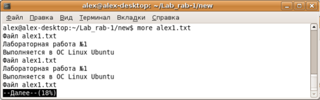 2) more [-опция] файл - выводит стандартный поток на экран порциями по 7 строк, ожидая нажатия клавиши Пробел для вывода очередной порции. Досрочно завершить вывод можно, нажав клавишу Q.