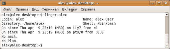 finger - команда позволяет определить, находится ли в системе некоторый пользователь. Введя команду finger имя_пользователя, можно получить разнообразную информацию, включающую и время последней регистрации данного пользователя в системе.