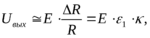 На Рисунке 3,г – два активных тензопреобразователя с сопротивлениями R1*R4 и два холостых, обеспечивающих температурную стабилизацию. Выходной сигнал равен: