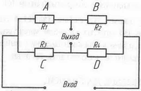 где |ε1| = |ε2| = |ε3| = |ε4|, т.е. относительные изменения сопротивлений R1, R2, R3, R4 тензорезисторов А,В,С,Д численно равны. Эта схема является наиболее желательным включением тензорезисторов. Во многих случаях мостовая цепь с тензорезисторами подключается своим выходом к гальванометру (вибратору) осциллографа непосредственно или через усилитель постоянного тока (см., например, усилитель "ТОПАЗ").