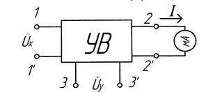 В работе для получения всех нужных характеристик применен фазочувствительный измеритель. Он состоит из фазочувcтвительного усилителя – выпрямителя (УВ) и магнитоэлектрического микроамперметра, подключаемого к выходным зажимам 2-2'У В (Рисунок 2)