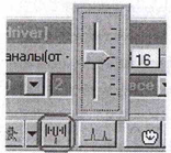 | Нажатие на эту кнопку приводит к появлению всплывающего ползунка, с помощью которого можно настроить "чувствительность" программной синхронизации. Текущее значение чувствительности отображается в окошке справа от ползунка. Для сильно зашумлённого сигнала более подходит более высокая "чувствительность", для довольно "чистого" сигнала или при низкой частоте дискредитации подойдёт меньшая "чувствительность". |
