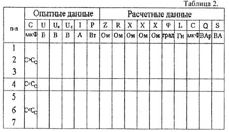 Изменяя емкость конденсатора, произвести измерения I, U, Р, UK, Uc и записать их значения в таблицу 2 для трех значений емкости С >Со и трех значений емкости С < Со.
