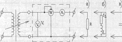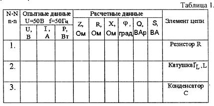 Аналогичные измерения произвести для индуктивной катушки (сх. б) и емкости (схема в), их результаты занести в таблицу 1 (строка 2иЗ).