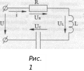 Схема замещения такой цепи, состоящей из последовательно соединенных резистивного R, индуктивного L и емкостного элементов, приведена на рис. 1.