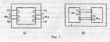 Обмотка с числом витков 1, к которой подводится напряжение u1,называется первичной, а обмотка с числом витков 2, к которой подключается нагрузка (или с которой «снимается» электрическая энергия нужных параметров u2 и i2) называется вторичной. Вторичных обмоток может быть несколько. Исходя из расположения обмоток на магнитопроводе, различают два типа конструкций трансформаторов: