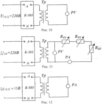 Внимание. Режим к.з., проведенный при номинальном напряжении U1H, является аварийным и опасным для исследователя, так как токи и динамические усилия, возникающие в обмотках в режиме к.з. при U1К.З.= U1H, превышают номинальные в 20 + 40 раз.