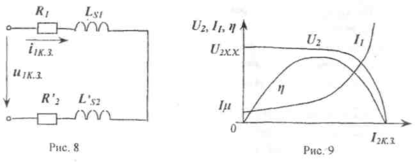 Схема замещения трансформатора, находящегося в режиме к.з., представлена на рис.8.