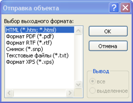 В диалоговом окне Отправка объекта выберите в списке Выбор формата вывода нужный формат файла.