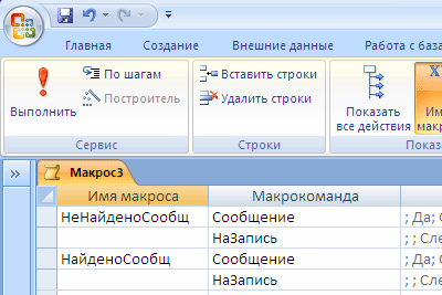 в группе Сервис вкладки Конструктор, в приложении Microsoft Access выполняется только первый макрос группы и процесс останавливается по достижении имени второго макроса.
