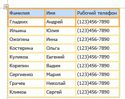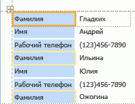 В табличных макетах элементы расположены по строкам и столбцам, как в электронной таблице, с надписями вверху. Табличные макеты элементов всегда охватывают два раздела формы; раздел с надписями всегда расположен выше раздела с элементами.