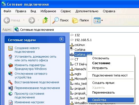 Нажимаем кнопку «Пуск», выбираем панель управления, переходим в раздел «Сеть и подключения к Интернету». Щелкаем ссылку Сетевые подключения. Теперь необходимо выбрать сетевой адаптер, по которому «приходит» Интернет. Делаем на нем щелчок правой кнопкой мыши и в открывшемся меню выбираем команду Свойства.