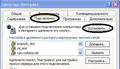 Открываем вкладку «Подключения» и нажимаем кнопку «Установить». На открывшейся странице «Мастера новых подключений» нажимаем кнопку «Далее», затем указываем «Подключение к Интернету», еще раз нажимаем «Далее». Выбираем «Установить подключение вручную», жмем «Далее», указываем «Подключаться через постоянное высокоскоростное подключение», нажимаем «Далее» и «Готово». На этом настройки общего подключения к Интернету закончены.