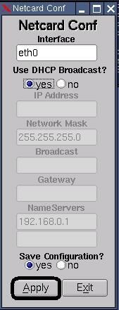 для сетевого интерфейса eth0 перевести переключатель “Use DHCP Broadcast?” в положение “yes”.