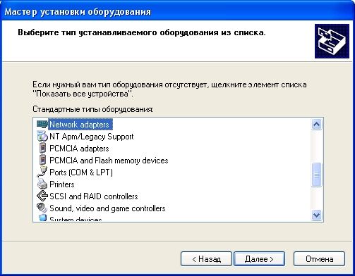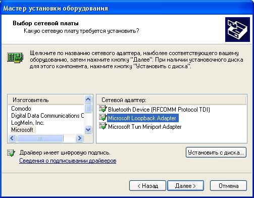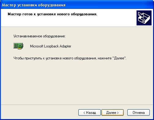 Создание Microsoft Loopback Adapter в Microsoft Windows XP.